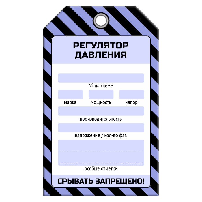 Бирка «РЕГУЛЯТОР ДАВЛЕНИЯ» (1 шт., односторонняя, пластик, 70х115 мм) в Омске купить