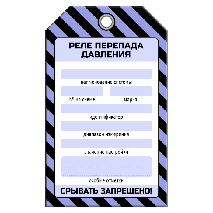 Бирка «РЕЛЕ ПЕРЕПАДА ДАВЛЕНИЯ» (1 шт., односторонняя, пластик, 70х115 мм) в Омске купить