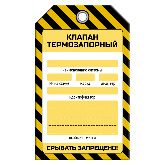 Бирка «КЛАПАН ТЕРМОЗАПОРНЫЙ» (1 шт., односторонняя, пластик, 70х115 мм) в Омске купить