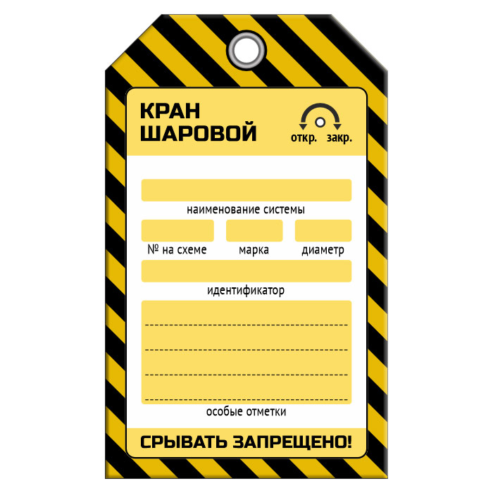 Бирка «КРАН ШАРОВОЙ» для газопровода (1 шт., односторонняя, пластик, 70х115 мм) в Омске купить