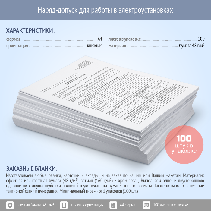Наряд-допуск для работы в электроустановках (упаковка из 100 штук) в Омске купить