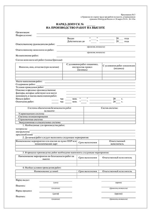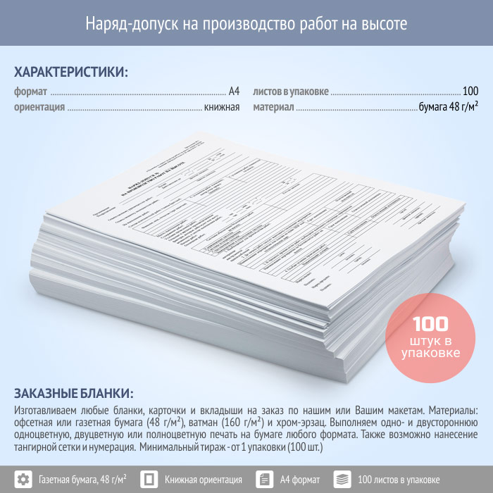 Наряд-допуск на производство работ на высоте (упаковка из 100 штук) в Омске купить