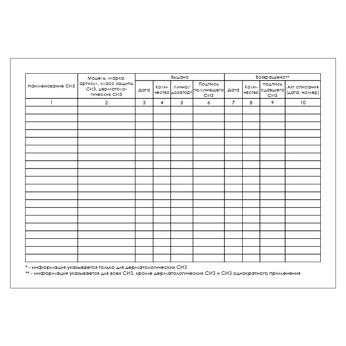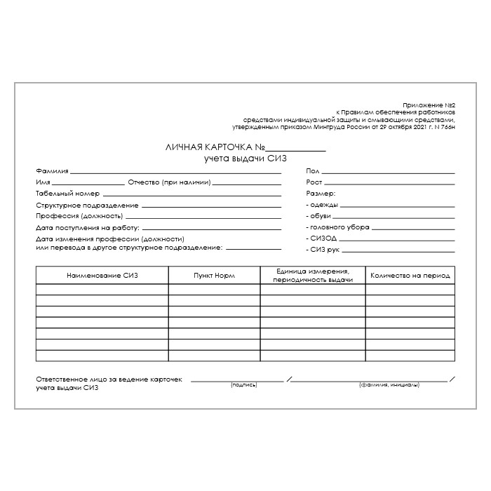 Карточка выдачи СИЗ (приказ Минтруда России от 29 октября 2021 г. №766н, упаковка 100 штук) в Омске купить