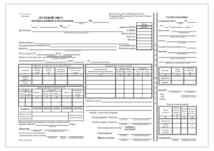 Путевой лист автобуса (форма № 6, упаковка из 100 штук) в Омске купить