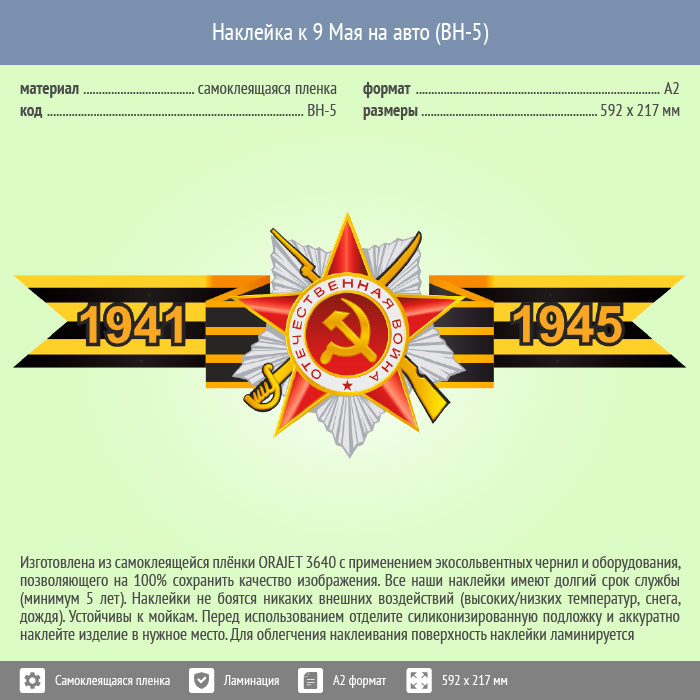Наклейка к 9 Мая на авто А2 формата (BH-5) в Омске купить