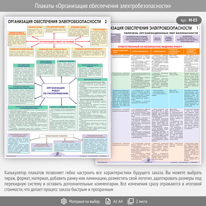 Плакаты «Организация обеспечения электробезопасности» (М-03, 2 листа) в Омске купить