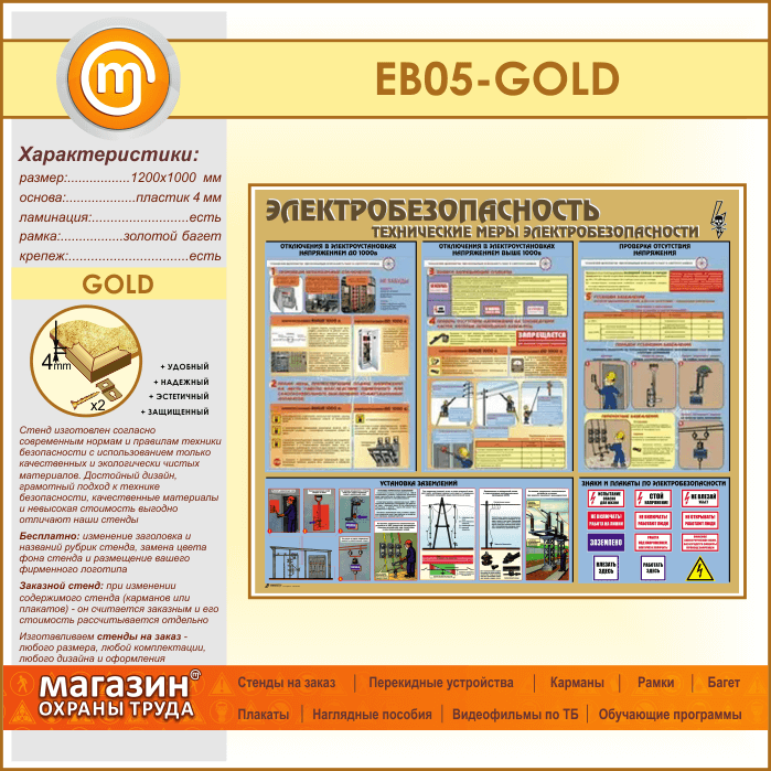 Стенд «Электробезопасность. Технические меры электробезопасности» (EB-05-GOLD) в Омске купить