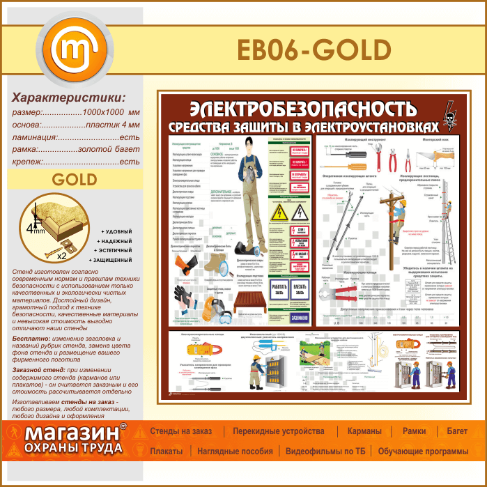 Стенд «Электробезопасность. Средства защиты в электроустановках» (EB-06-GOLD) в Омске купить
