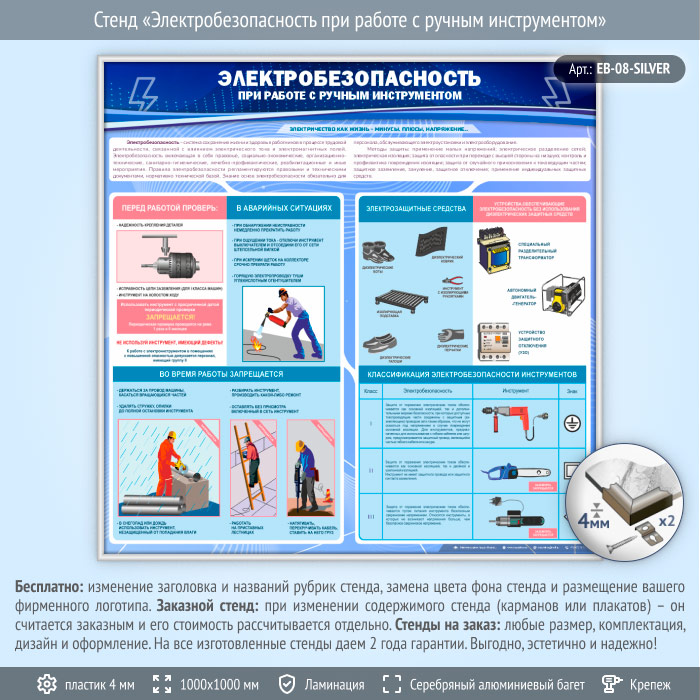 Стенд «Электробезопасность при работе с ручным инструментом» (EB-08-SILVER) в Омске купить