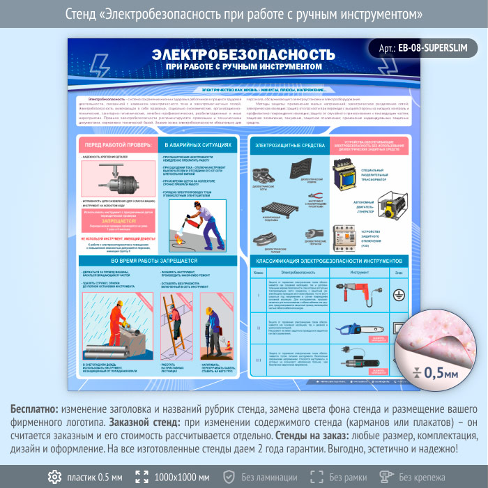 Стенд «Электробезопасность при работе с ручным инструментом» (EB-08-SUPERSLIM) в Омске купить
