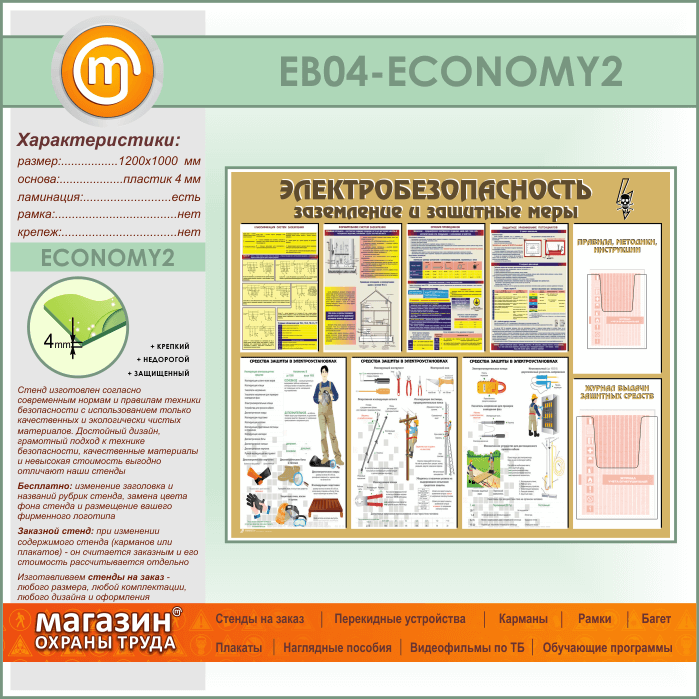 Стенд «Электробезопасность. Заземление и защитные меры» с 2 объемными карманами (EB-04-ECONOMY2) в Омске купить