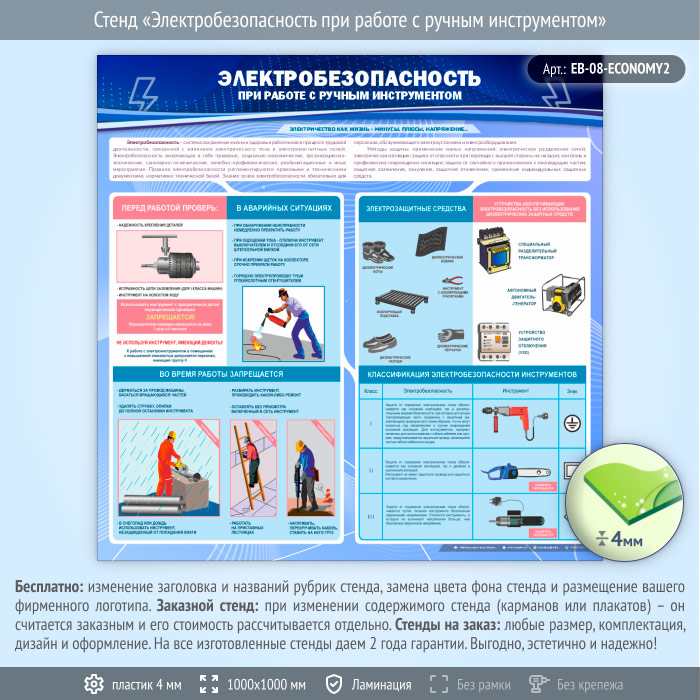 Стенд «Электробезопасность при работе с ручным инструментом» (EB-08-ECONOMY2) в Омске купить