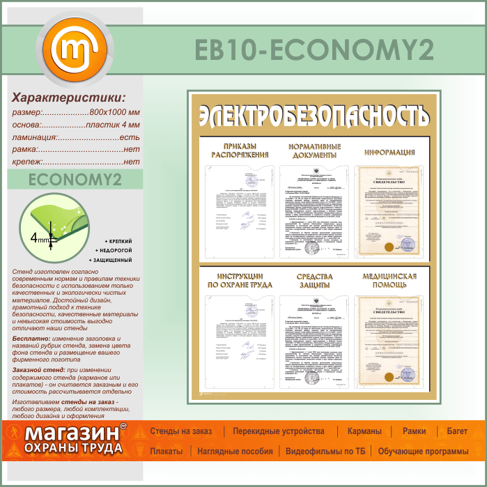 Стенд «Электробезопасность» с 6 карманами (EB-10-ECONOMY2) в Омске купить