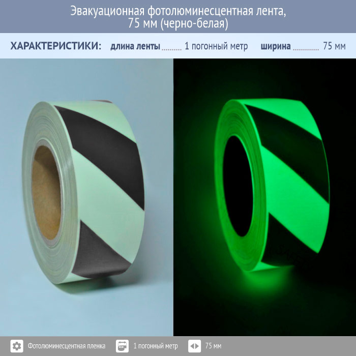 Эвакуационная фотолюминесцентная лента, 75 мм (черно-белая) в Омске купить
