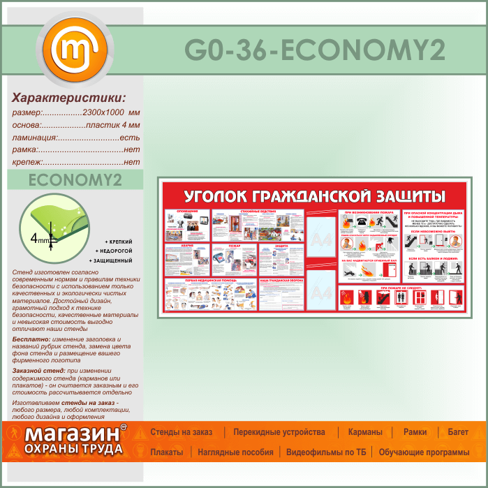 Стенд «Уголок гражданской защиты» c 2 карманами (GO-36-ECONOMY2) в Омске купить