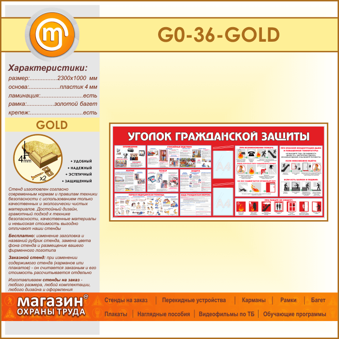 Стенд «Уголок гражданской защиты» c 2 карманами (GO-36-GOLD) в Омске купить