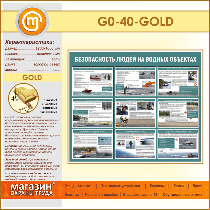 Стенд «Безопасность людей на водных объектах» (GO-40-GOLD) в Омске купить