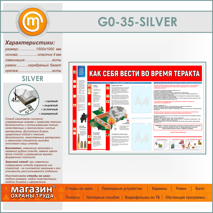 Стенд «Как себя вести во время теракта» c 2 карманами (GO-35-SILVER) в Омске купить