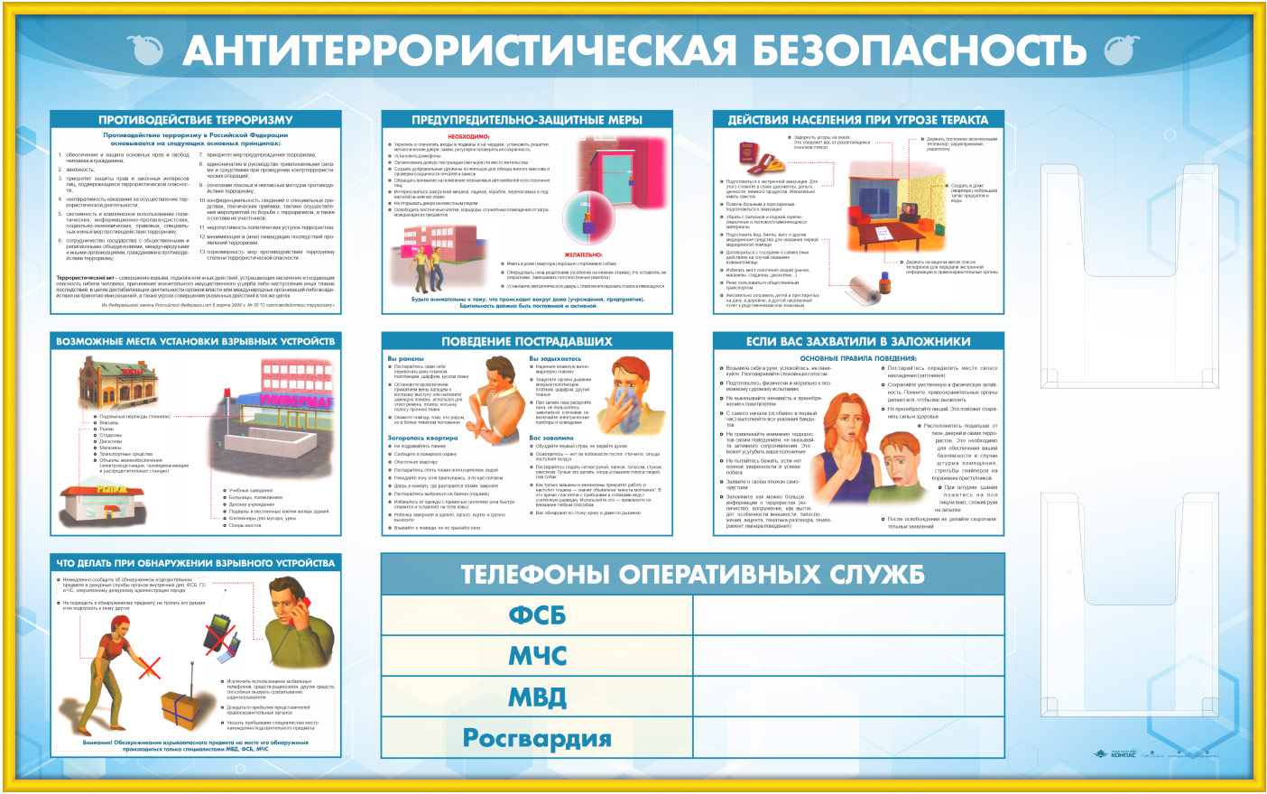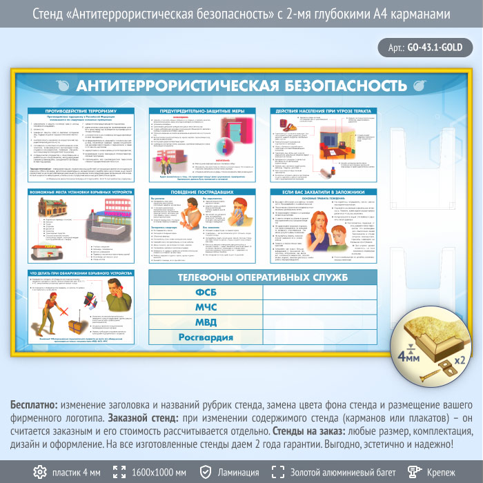 Стенд «Антитеррористическая безопасность» с 2-мя глубокими А4 карманами (GO-43.1-GOLD) в Омске купить
