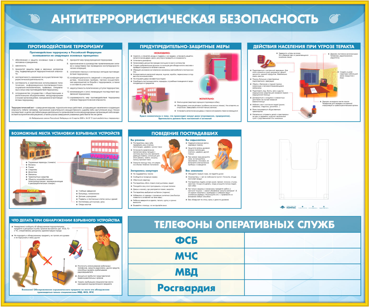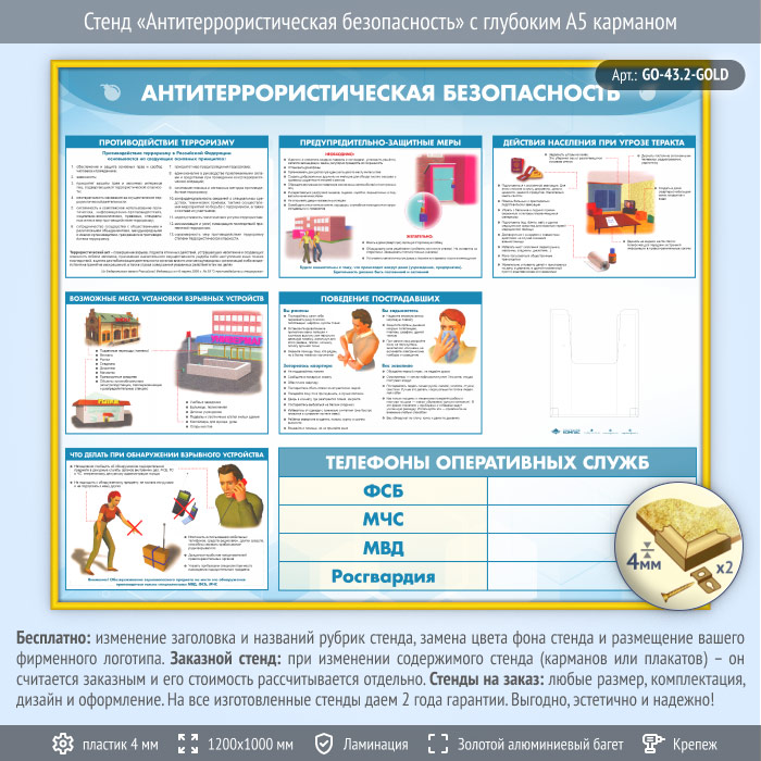 Стенд «Антитеррористическая безопасность» с глубоким А5 карманом (GO-43.2-GOLD) в Омске купить
