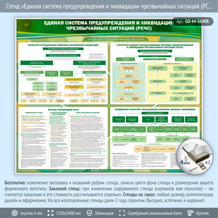 Стенд «Единая система предупреждения и ликвидации чрезвычайных ситуаций (РСЧС)» (GO-44-SILVER) в Омске купить