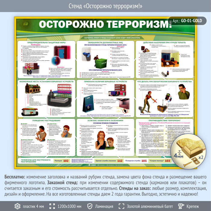 Стенд «Осторожно терроризм!» (GO-01-GOLD) в Омске купить