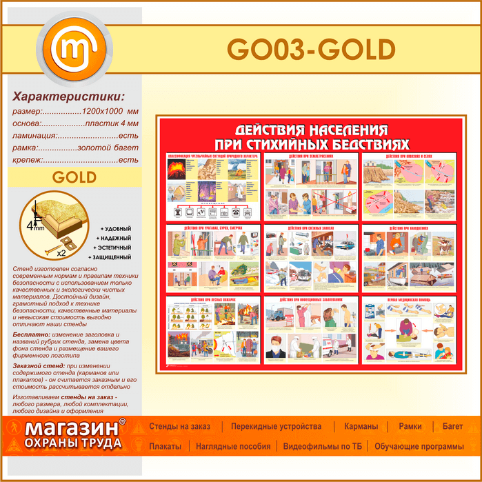 Стенд «Действия населения при стихийных бедствиях» (GO-03-GOLD) в Омске купить