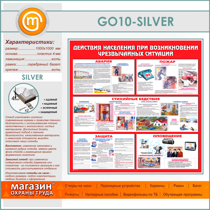 Стенд «Действия населения при возникновении чрезвычайных ситуаций» (GO-10-SILVER) в Омске купить