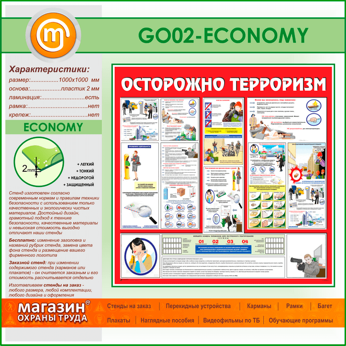 Стенд «Осторожно терроризм!» (GO-02-ECONOMY) в Омске купить