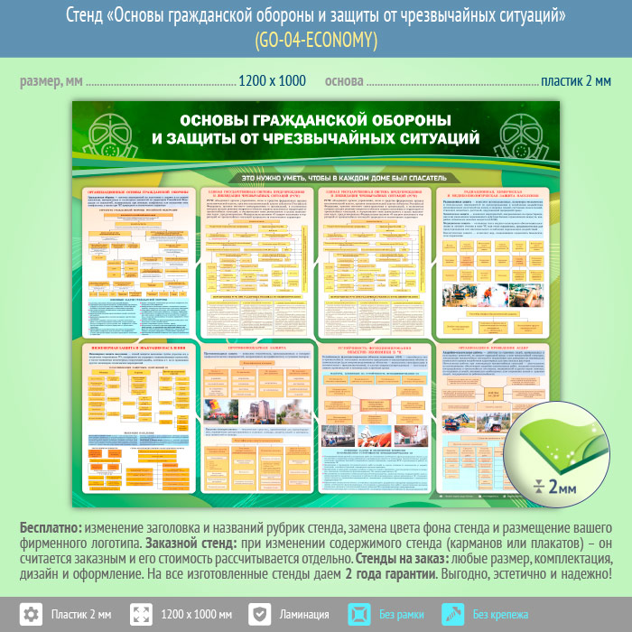 Стенд «Основы гражданской обороны и защиты от чрезвычайных ситуаций» (GO-04-ECONOMY) в Омске купить