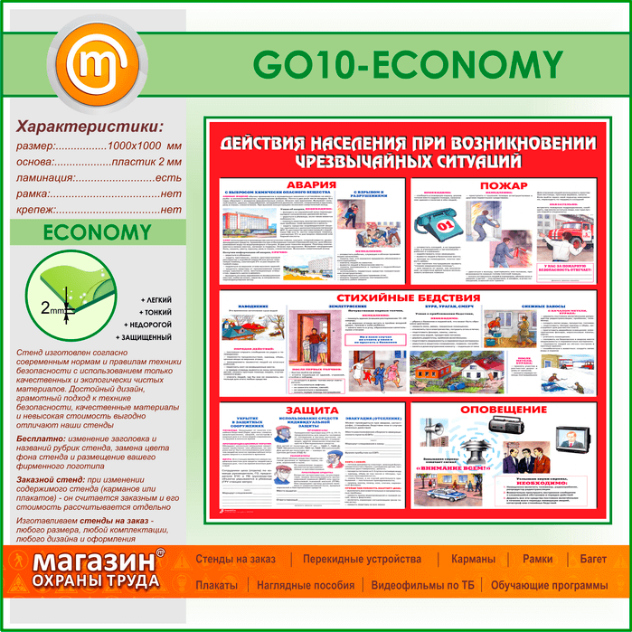Стенд «Действия населения при возникновении чрезвычайных ситуаций» (GO-10-ECONOMY) в Омске купить