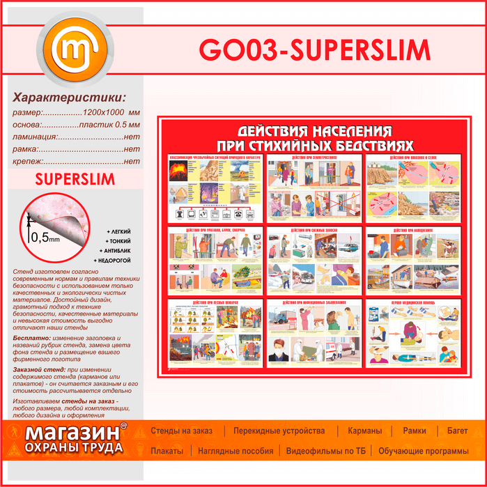 Стенд «Действия населения при стихийных бедствиях» (GO-03-SUPERSLIM) в Омске купить