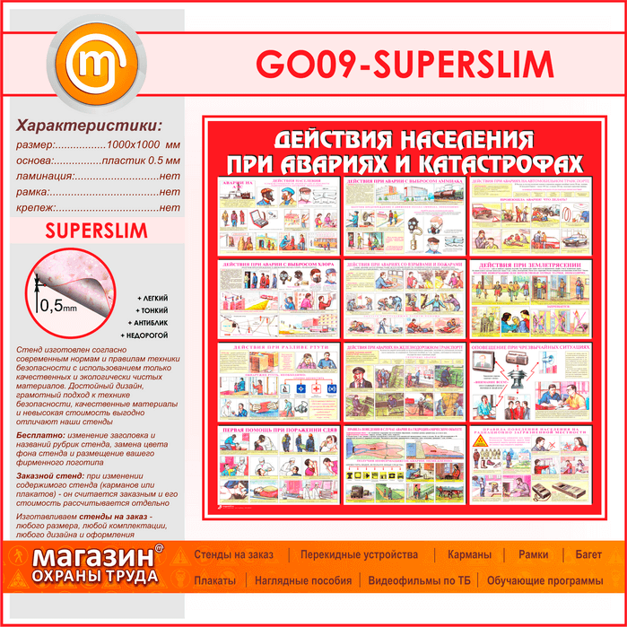 Стенд «Действия населения при авариях и катастрофах» (GO-09-SUPERSLIM) в Омске купить