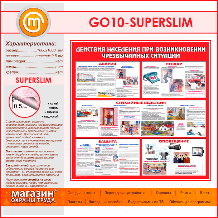 Стенд «Действия населения при возникновении чрезвычайных ситуаций» (GO-10-SUPERSLIM) в Омске купить