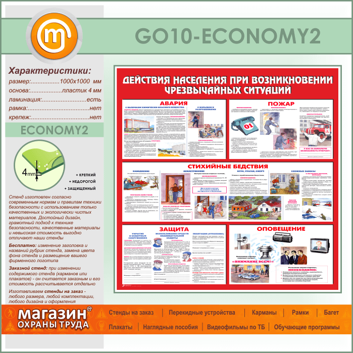 Стенд «Действия населения при возникновении чрезвычайных ситуаций» (GO-10-ECONOMY2) в Омске купить