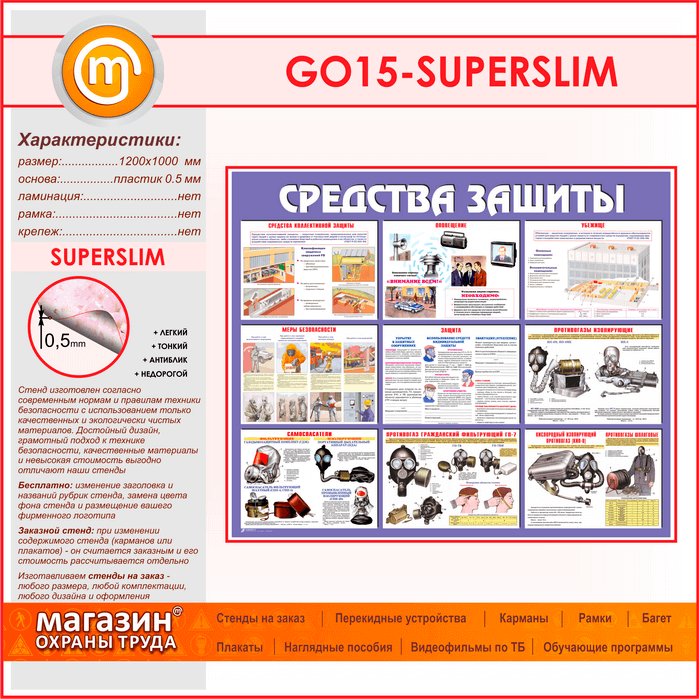 Стенд «Средства защиты» (GO-15-SUPERSLIM) в Омске купить