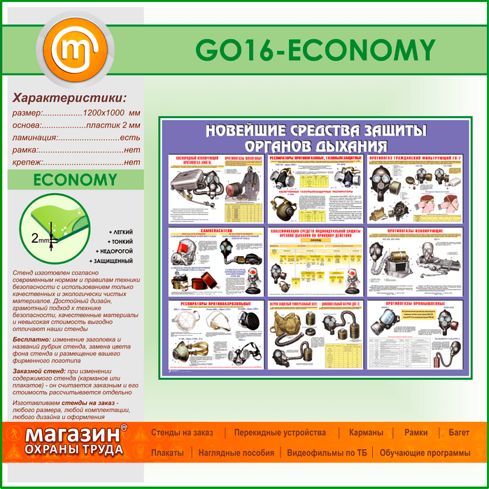Стенд «Новейшие средства защиты органов дыхания» (GO-16-ECONOMY) в Омске купить