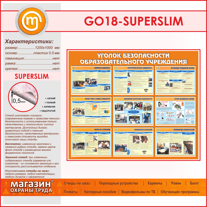 Стенд «Уголок безопасности образовательного учреждения» (GO-18-SUPERSLIM) в Омске купить