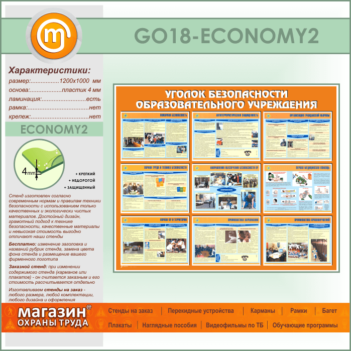 Стенд «Уголок безопасности образовательного учреждения» (GO-18-ECONOMY2) в Омске купить