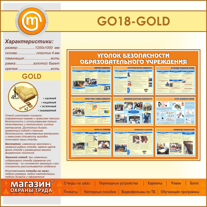 Стенд «Уголок безопасности образовательного учреждения» (GO-18-GOLD) в Омске купить