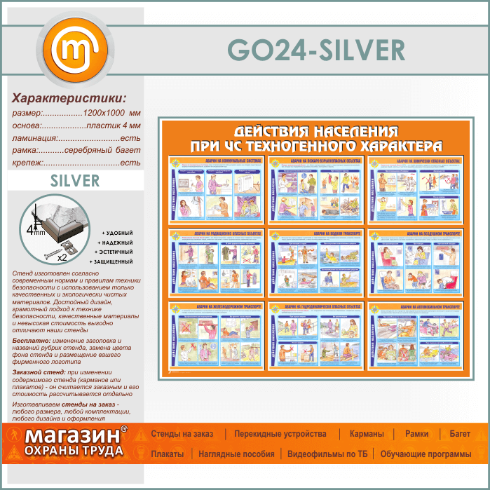 Стенд «Действия населения при ЧС техногенного характера» (GO-24-SILVER) в Омске купить
