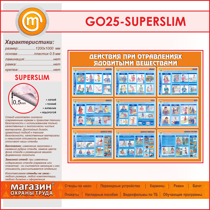 Стенд «Действия при отравлении ядовитыми веществами» (GO-25-SUPERSLIM) в Омске купить