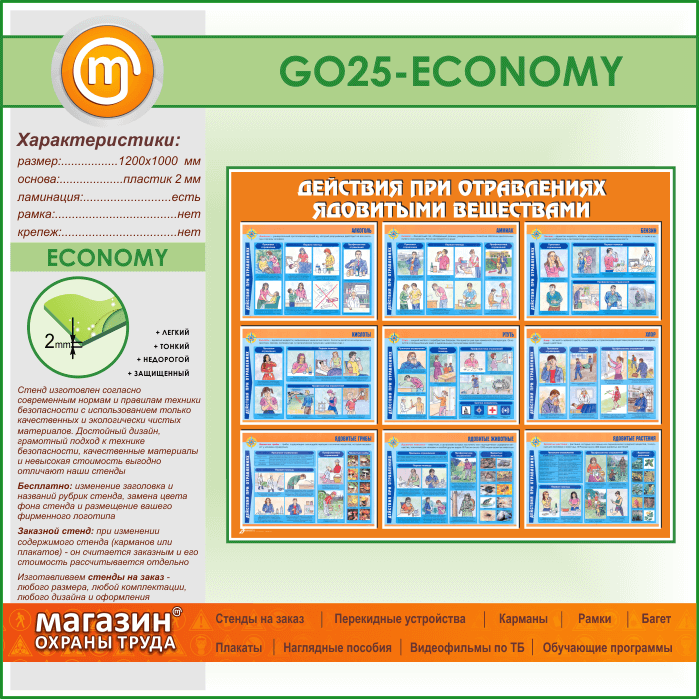 Стенд «Действия при отравлении ядовитыми веществами» (GO-25-ECONOMY) в Омске купить