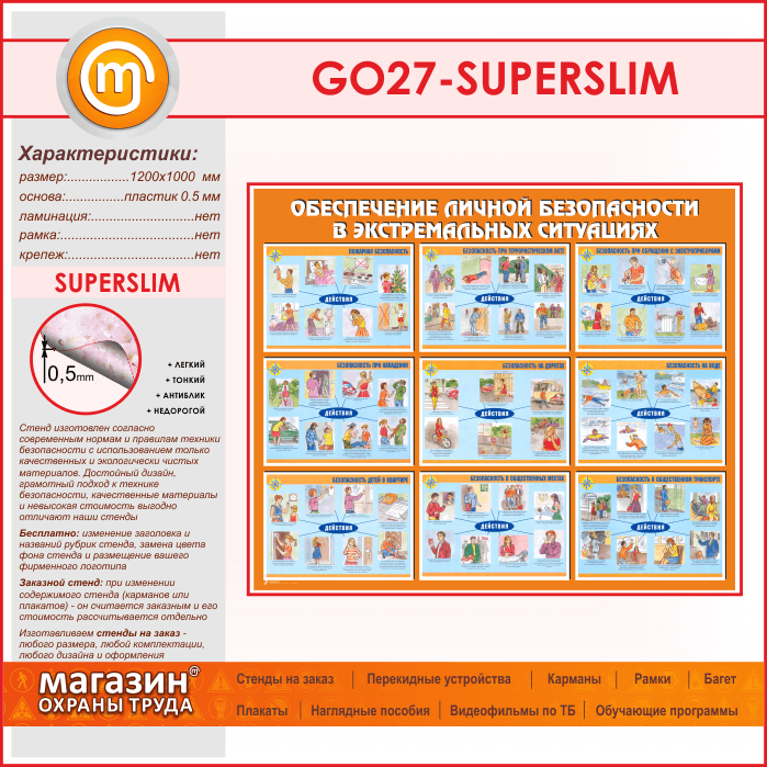 Стенд «Обеспечение личной безопасности в экстремальных ситуациях» (GO-27-SUPERSLIM) в Омске купить