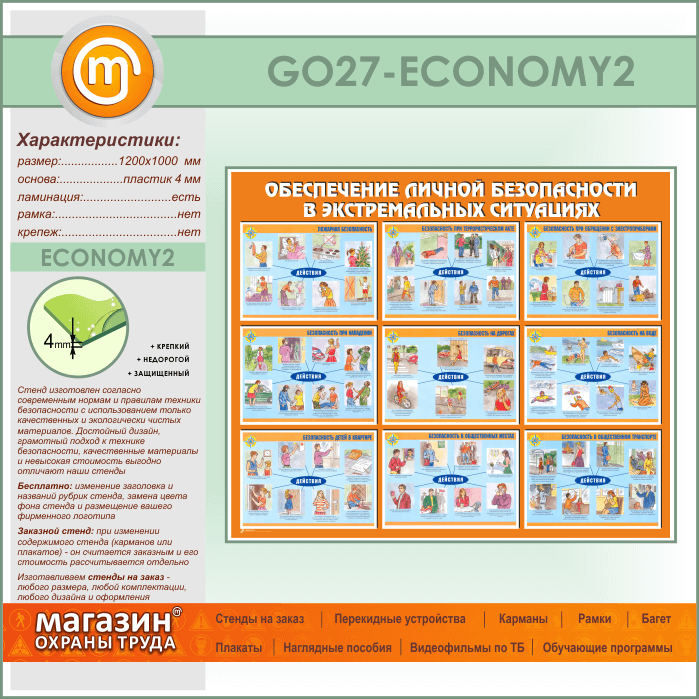 Стенд «Обеспечение личной безопасности в экстремальных ситуациях» (GO-27-ECONOMY2) в Омске купить