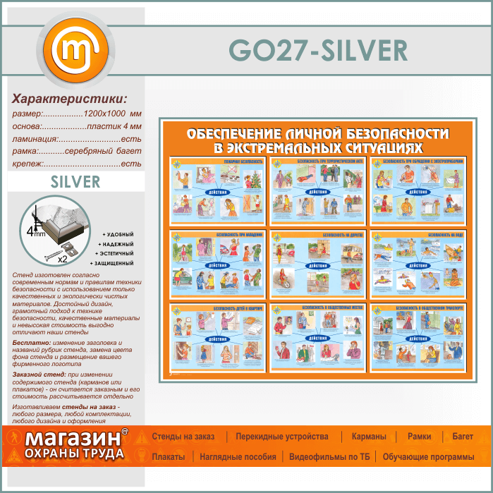 Стенд «Обеспечение личной безопасности в экстремальных ситуациях» (GO-27-SILVER) в Омске купить