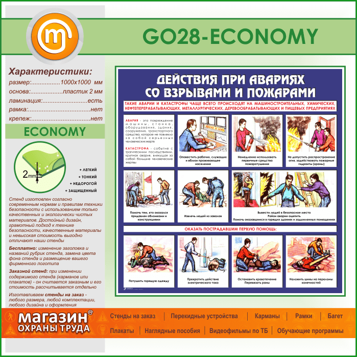 Стенд «Действия при авариях со взрывами и пожарами» (GO-28-ECONOMY) в Омске купить