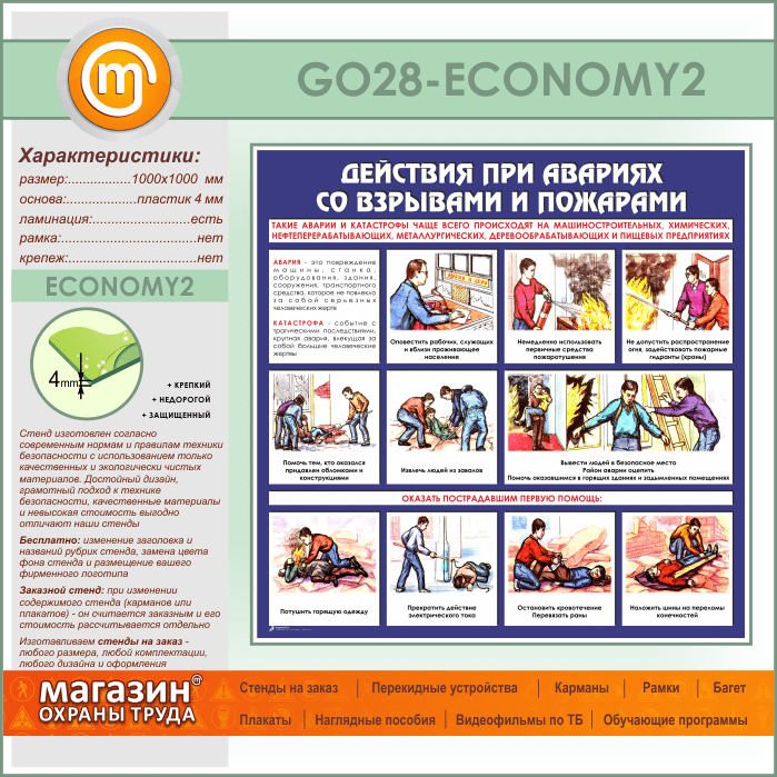 Стенд «Действия при авариях со взрывами и пожарами» (GO-28-ECONOMY2) в Омске купить