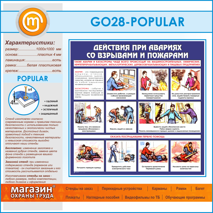 Стенд «Действия при авариях со взрывами и пожарами» (GO-28-POPULAR) в Омске купить