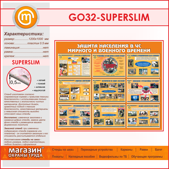 Стенд «Защита населения в ЧС мирного и военного времени» (GO-32-SUPERSLIM) в Омске купить